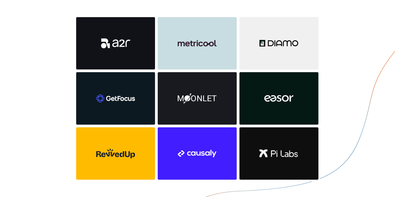 Para muchas startups en etapa temprana, un logotipo compuesto por un isotipo (símbolo) y una palabra (nombre escrito) es la elección perfecta. Compara los logos de A2R, Diamo, GetFocus, Causaly y Pi Labs a continuación. El isotipo funciona bien para perfiles en redes sociales, favicons e íconos de aplicaciones, mientras que el logo completo es excelente para sitios web, presentaciones y merchandising.